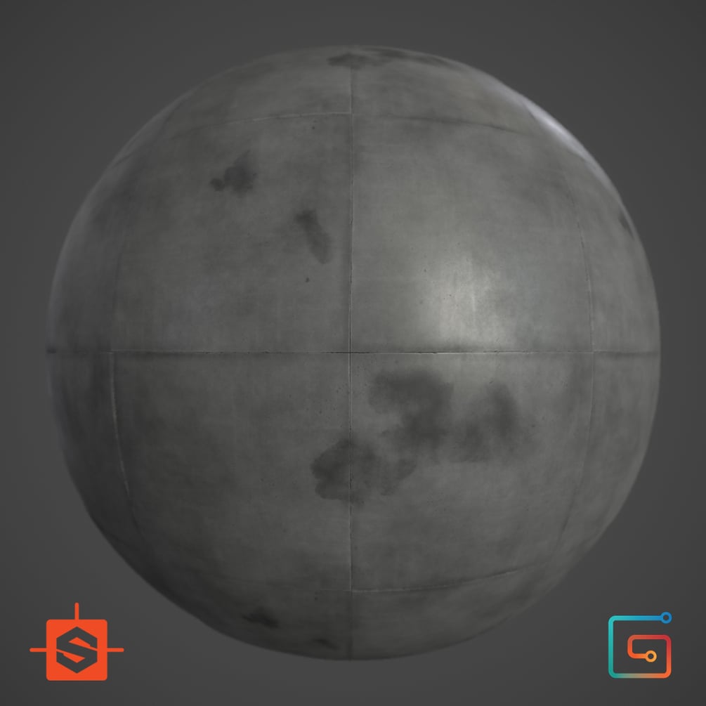 High quality basic concrete floor material graph. Complete and organized Substance Designer .sbs file ready for use in both pbr and specular rendering applications.
